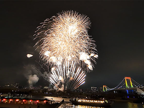海の上での食事と景色を楽しみ、最後には目の前で上がる大迫力の花火もあり、いつもとは少し違った特別なひとときを過ごすことができました。